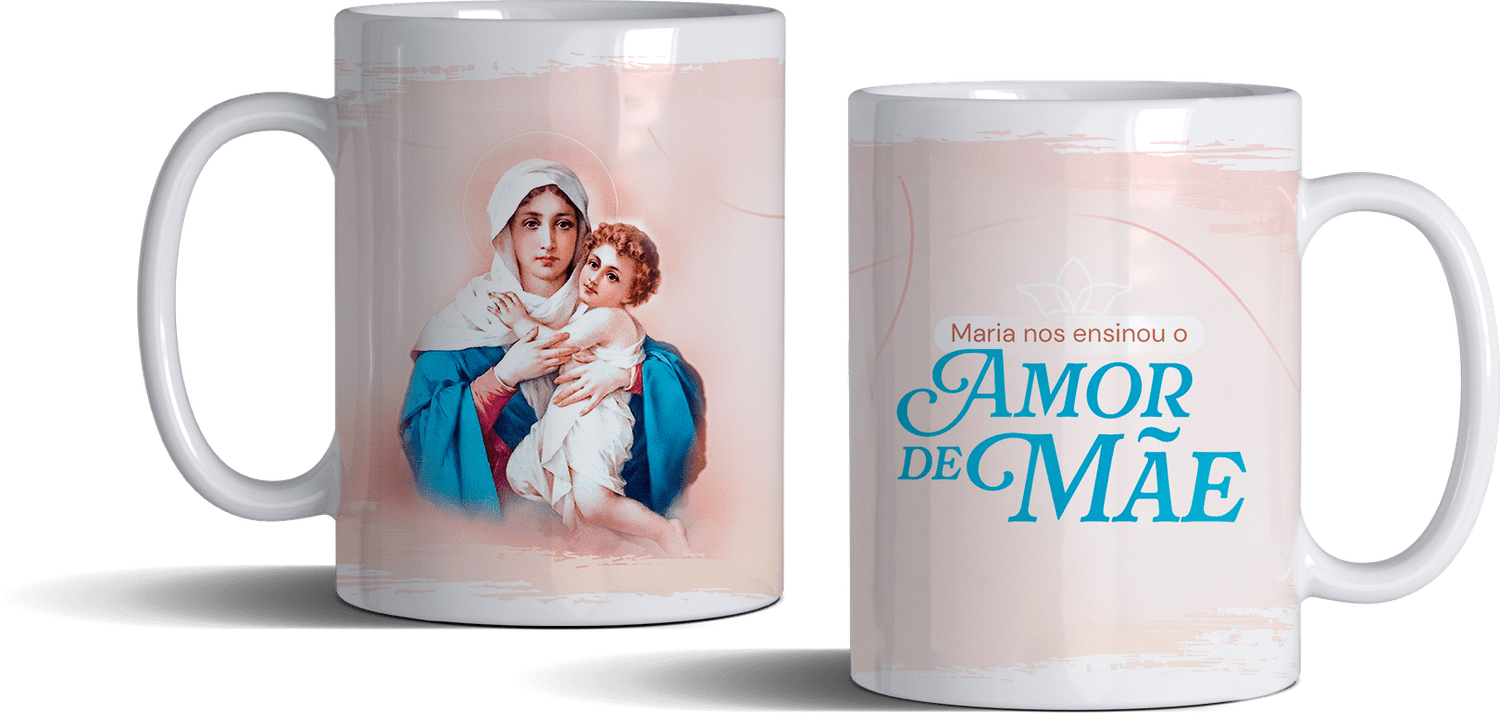 Esta caneca foi projetada para refletir a nobreza da missão materna à luz da Aliança de Amor: