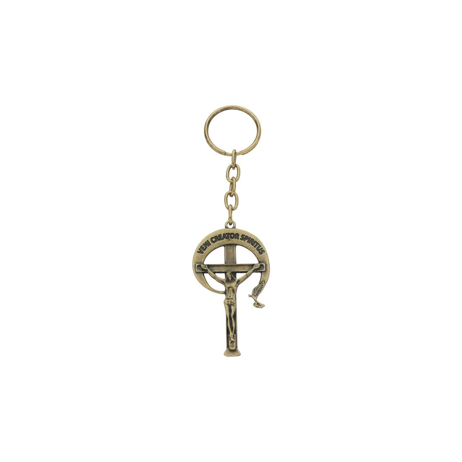 Esse lindo chaveiro de crucifixo da RCC faz parte do catálogo de chaveiros católicos da Lírio do Vale Artigos Religiosos. É todo feito em metal ouro velho. No pingente, a cruz está envolta pela letra C e tem a inscrição Veni Creator Spiritus, que na tradução significa “Vem Espírito Criador” e é complementada pela imagem de uma pomba, ou seja, o Divino Espírito Santo. Esse é um item religioso produzido especialmente para os integrantes da RCC - Renovação Carismática Católica. É prático e útil para o dia a dia, além de ser um produto católico muito significativo. Perfeito para os grupos de RCC nas paróquias ou para presentear amigos e familiares que fazem parte do movimento.