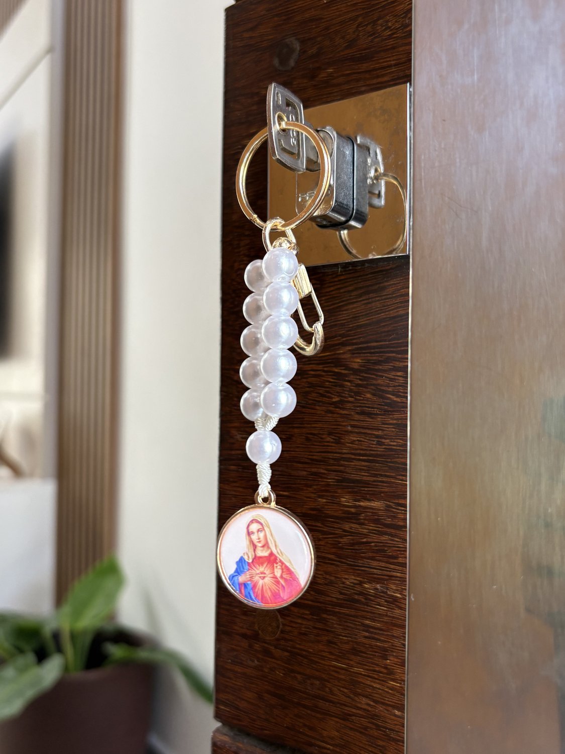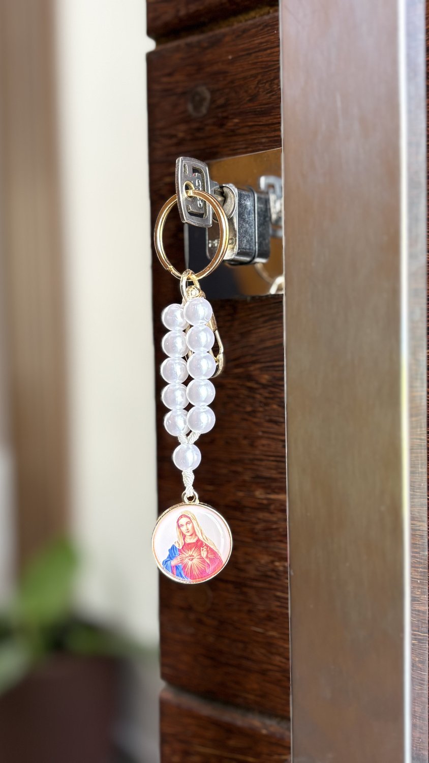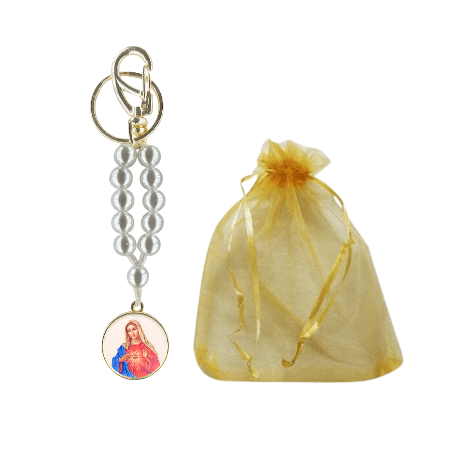 Chaveiro Dezena Imaculado Coração de Maria - Pérola ABS