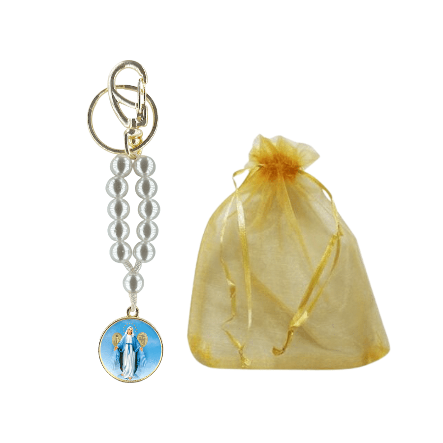 Nossa Senhora das Graças, através da Medalha Milagrosa, é uma das devoções mais difundidas e amadas em todo o mundo, prometendo proteção e auxílio aos que a carregam. A Lírio do Vale Distribuidora de Artigos Religiosos apresenta este chaveiro dezena, que une a praticidade do cotidiano à força desta tradição. Confeccionado em Pérola ABS, o produto oferece um visual clássico e sofisticado, sendo uma peça indispensável para o varejo religioso que busca alto giro e fidelização de clientes.
