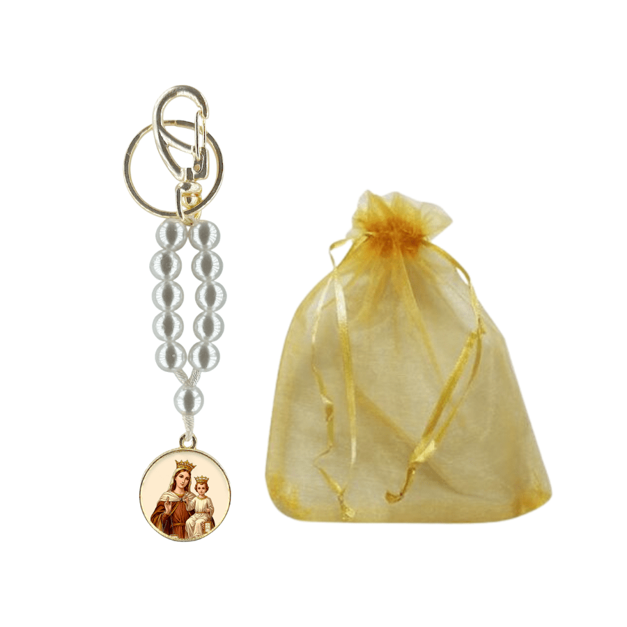 A devoção a Nossa Senhora do Carmo é sinônimo de proteção e fidelidade à oração. A Lírio do Vale Distribuidora de Artigos Religiosos apresenta este chaveiro dezena, um acessório que permite ao fiel carregar consigo um pedaço da espiritualidade carmelita de forma prática e elegante. Confeccionado em Pérola ABS, este produto une a beleza clássica das pérolas com a durabilidade necessária para um item de uso diário, sendo uma peça de alto giro e excelente aceitação no comércio católico.