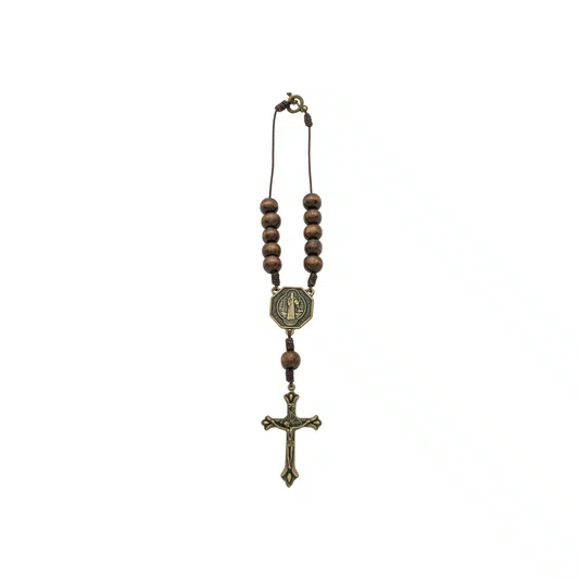 A Dezena para Carro São Bento de Madeira Marrom Escuro 10mm, desenvolvida e distribuída pela Lírio do Vale Distribuidora de Artigos Religiosos, é um sacramental de proteção robusto e elegante, ideal para acompanhar motoristas em seus trajetos diários. Produzida com contas de madeira de 10mm em um tom marrom profundo, esta peça oferece um visual rústico e sofisticado, sendo um item de alta procura para o público masculino e para aqueles que preferem artigos religiosos em materiais naturais.
