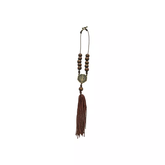 Dezena para Carro São Bento de Madeira Marrom Escuro 10mm com Pompom