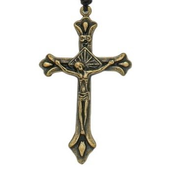 Crucifixo com Acabamento em Ouro Velho: peça robusta com detalhes artísticos que conferem tradição e nobreza ao acessório.