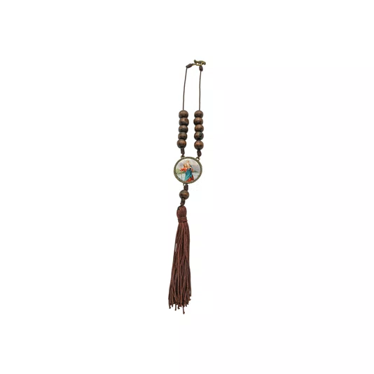 Dezena para Carro São Cristóvão de Madeira Marrom Escuro 10mm com Pompom