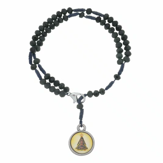 Kit com terço de pulso preto de Nossa Senhora Aparecida - 2Un