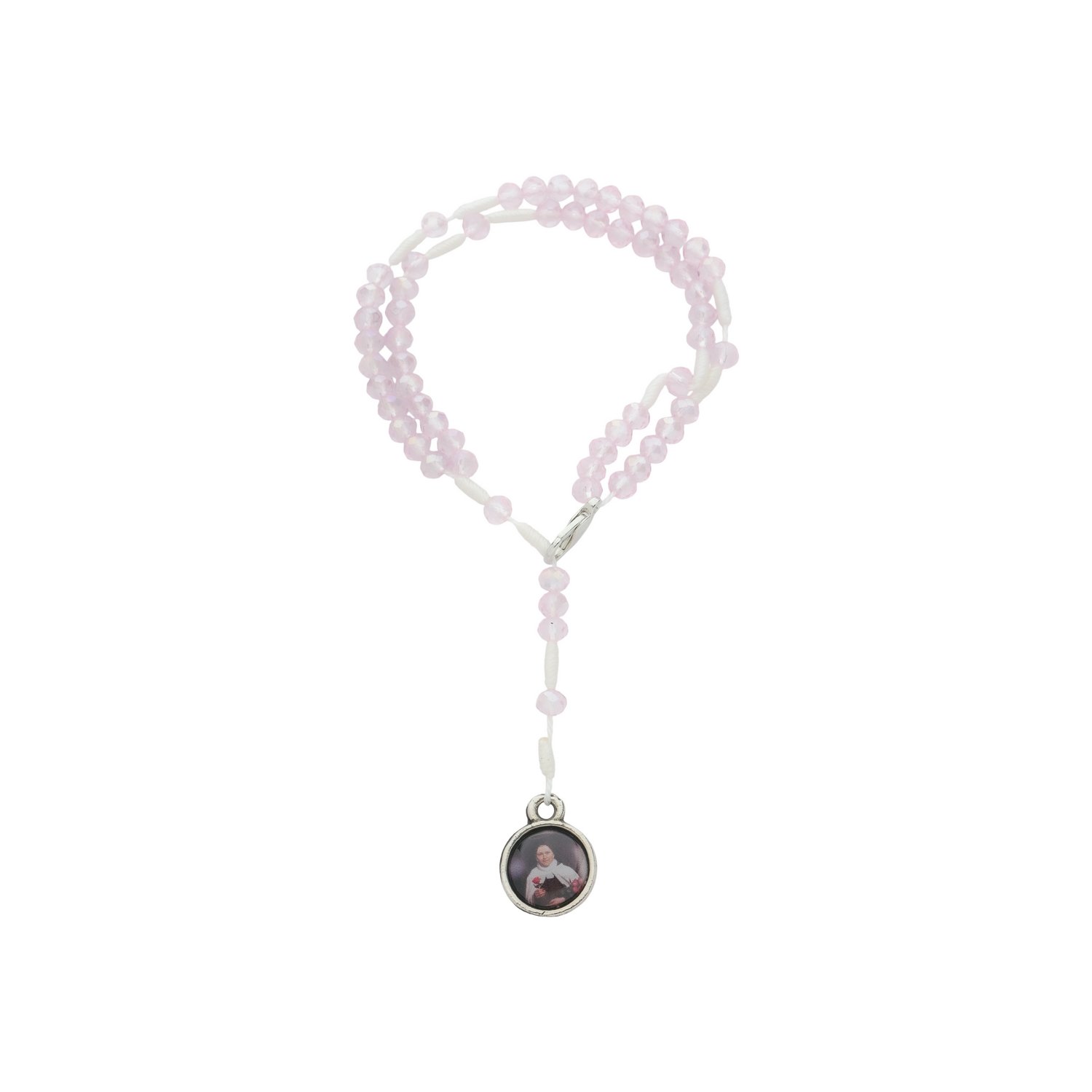Kit com terço para pulso de Santa Teresinha rosa bebê - 2Un