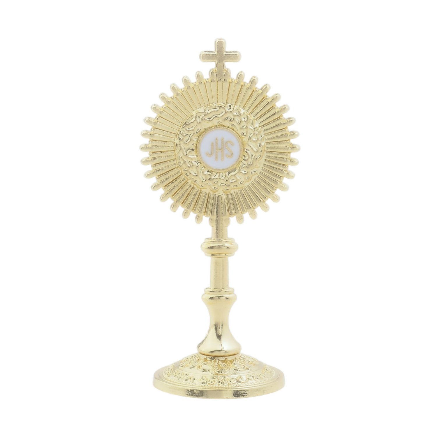 Ostensório metalizado na cor dourada, tamanho pequeno.