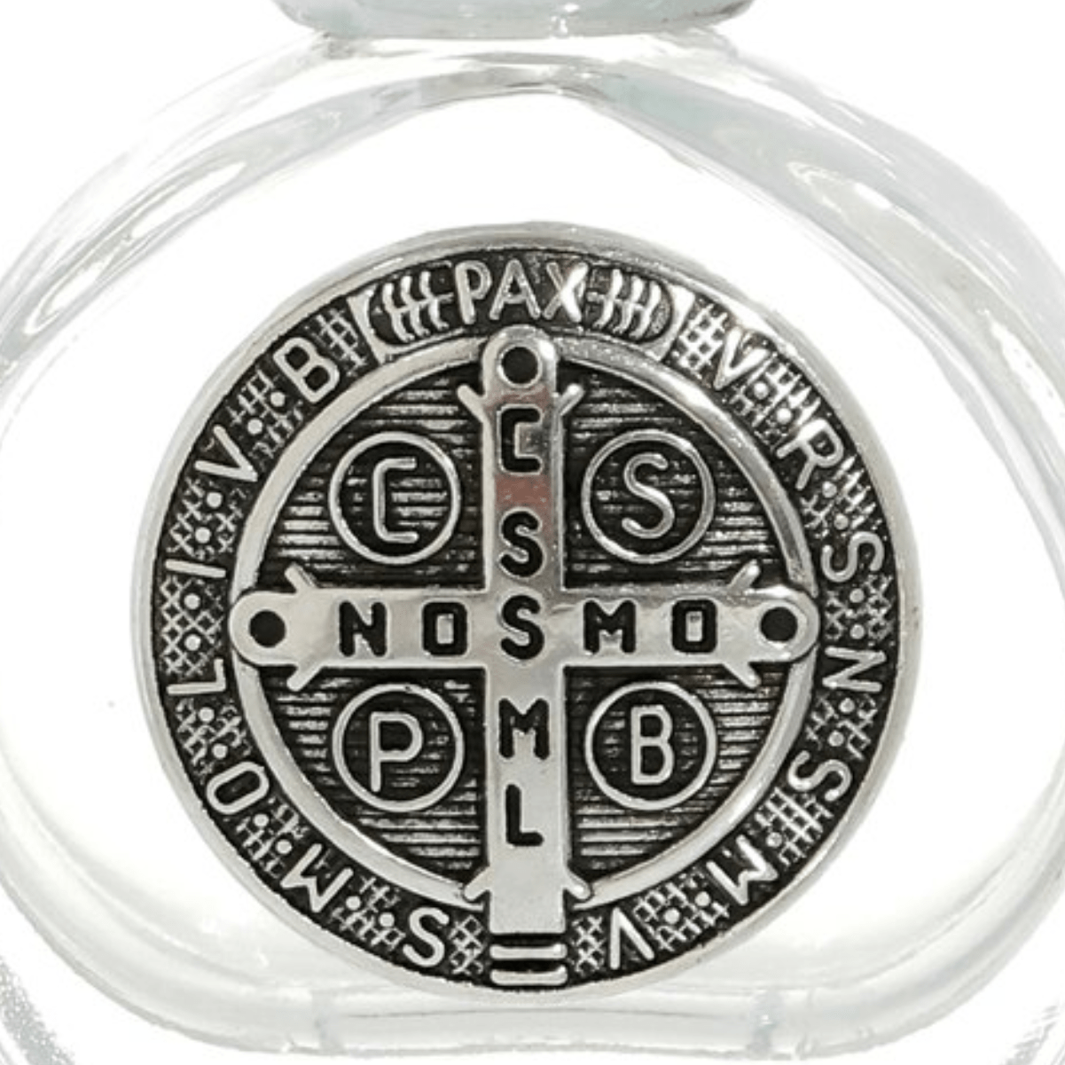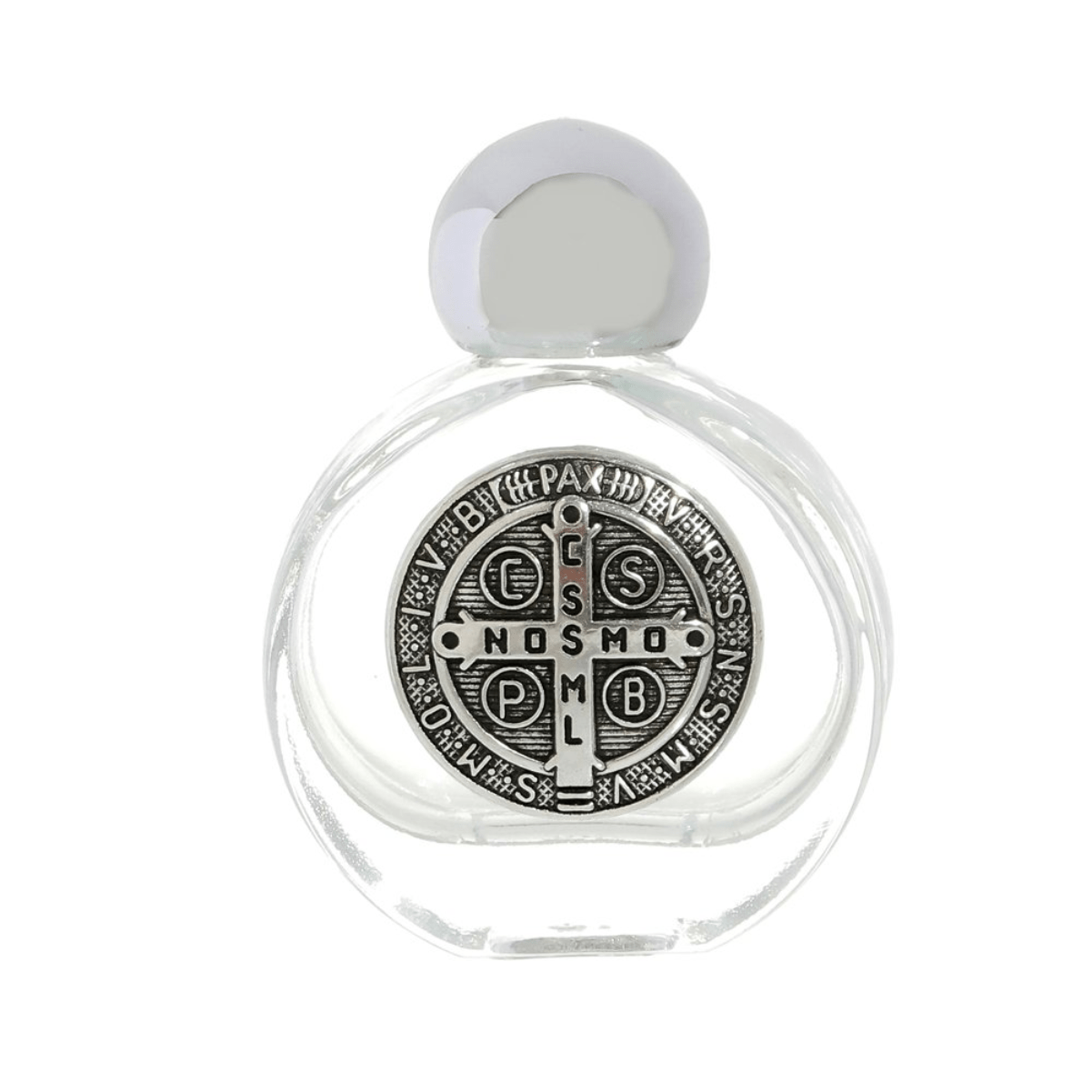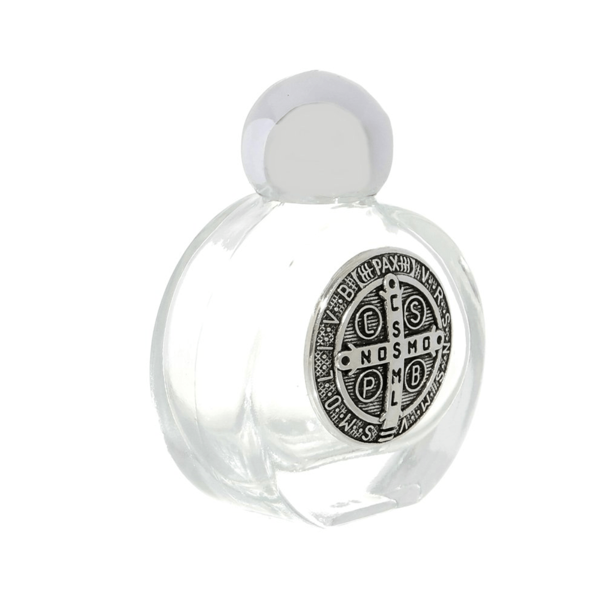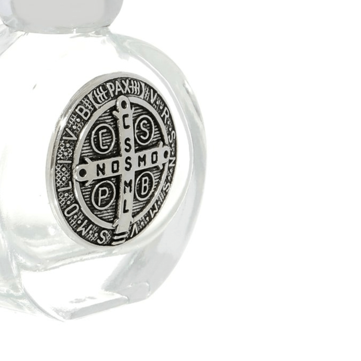 Este porta água benta é uma das pessoas mais procuradas no site da Lírio do Vale Distribuidora de Artigos Religiosos! A garrafinha para água benta é feita de vidro e possui a Medalha de São Bento em metal na cor de prata envelhecida. A tampa é de plástico na cor prata.