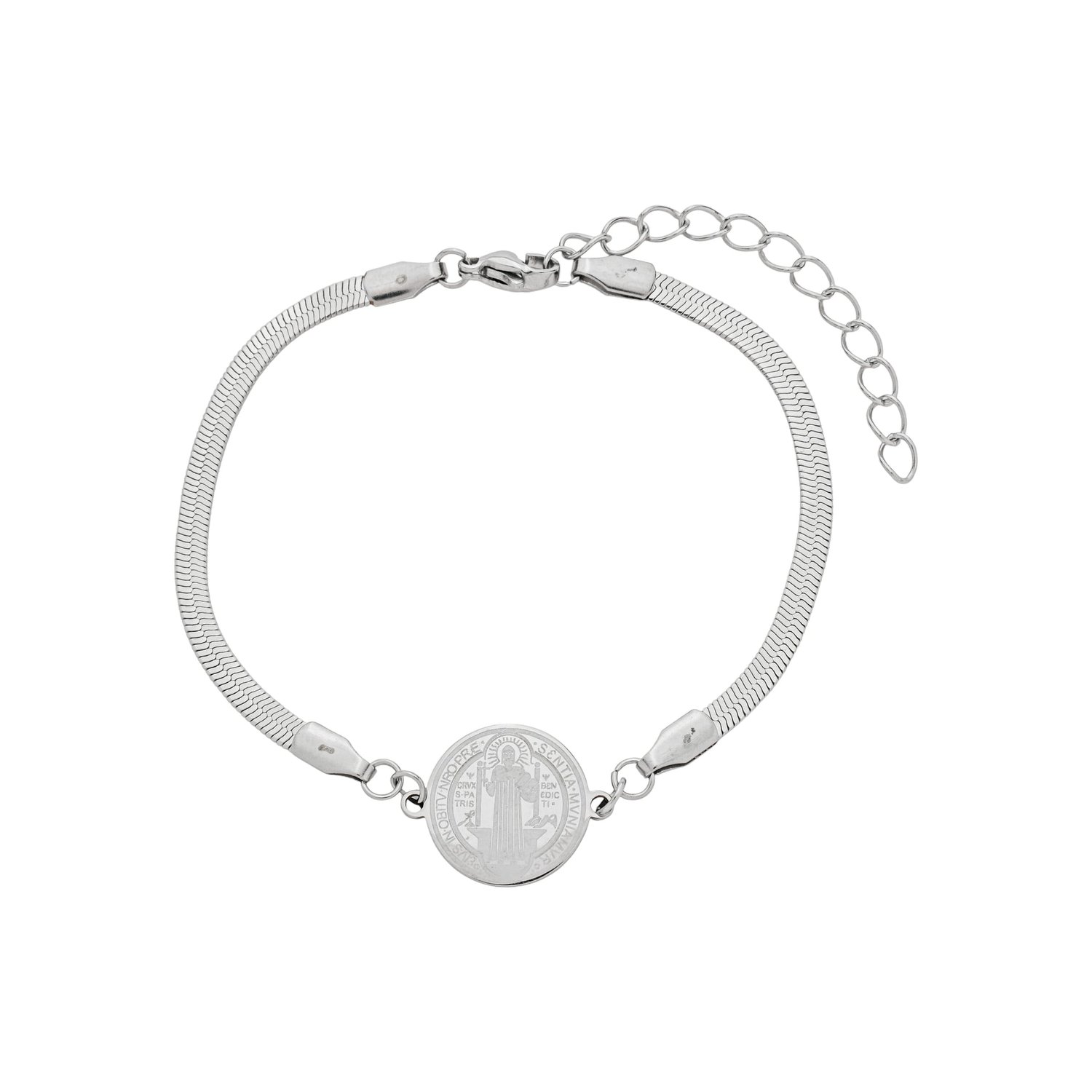 Pulseira São Bento com Berloques em Aço Inox - Prata