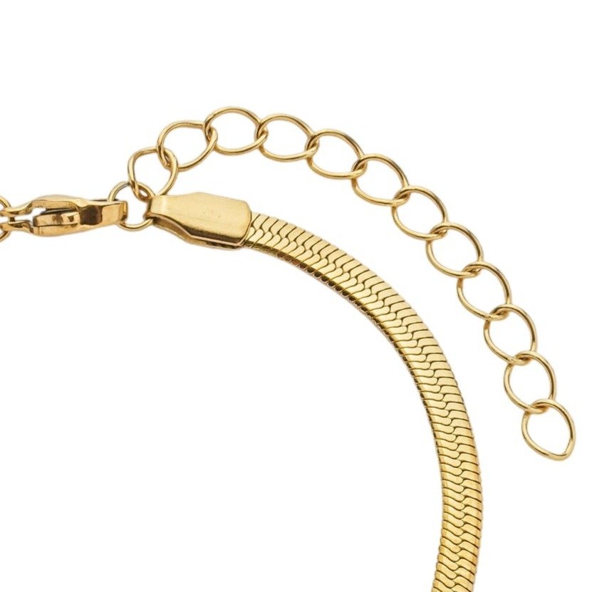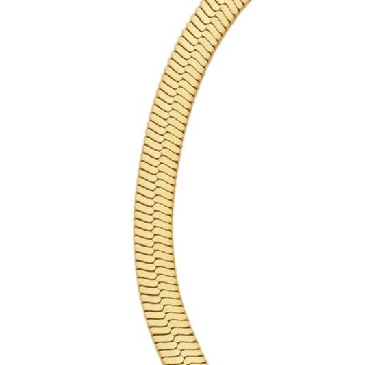 Esta pulseira é confeccionada em aço inoxidável de alta qualidade com banho dourado premium. A malha serpente (snake) é composta por elos contínuos e arredondados que garantem uma textura suave, extremamente confortável e visualmente fluida, lembrando o movimento de uma fita de ouro no pulso.