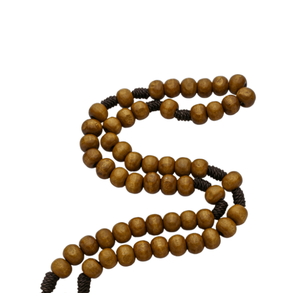 Contas em Madeira Marrom Claro 8mm: Confeccionadas em madeira de alta qualidade com acabamento acetinado, as contas oferecem uma estética orgânica e rústica, garantindo durabilidade e um toque confortável para a oração diária.