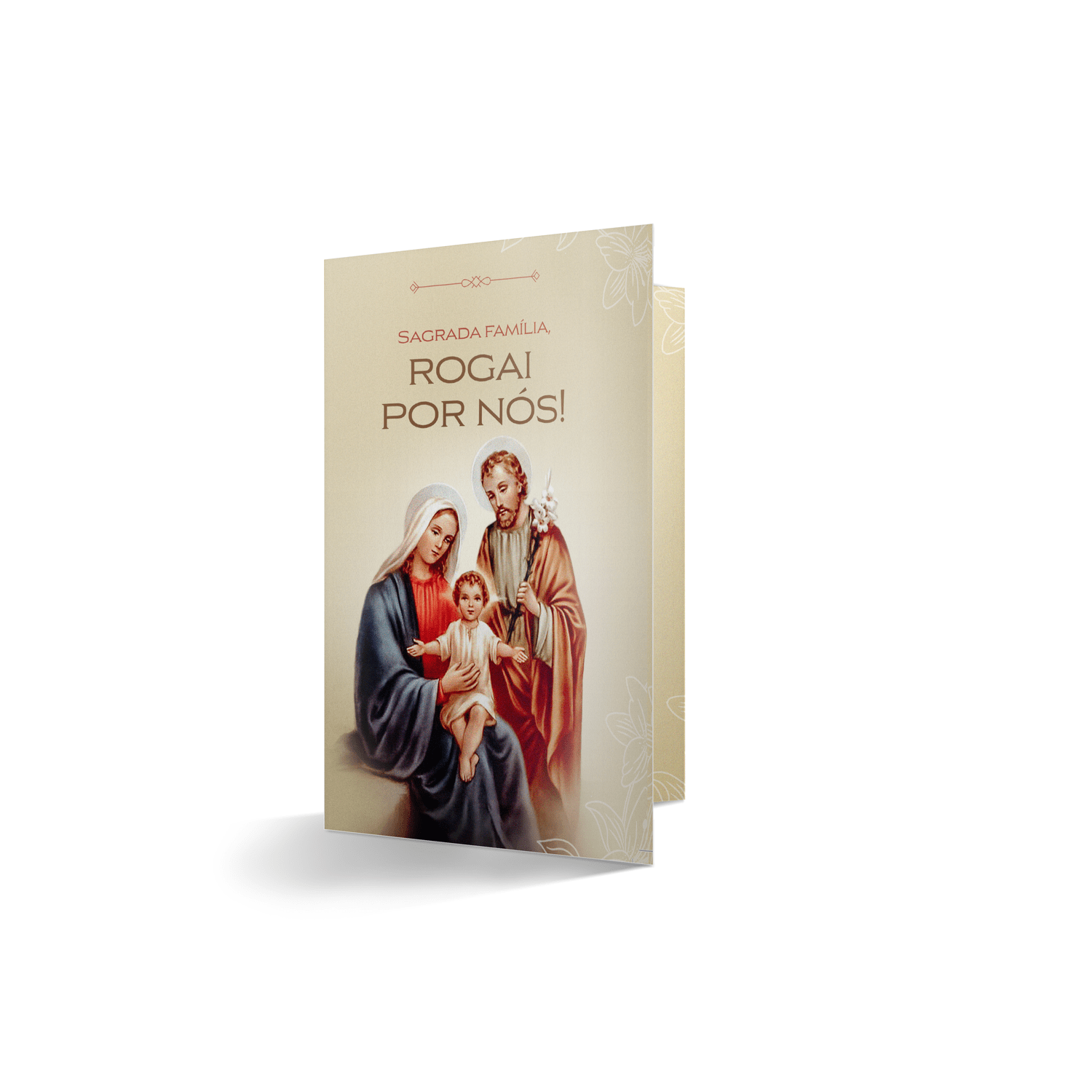 Kit de Evangelização Completo: Acompanha um folheto devocional exclusivo com a mensagem "Sagrada Família, rogai por nós!", contendo as orientações para a oração do Rosário, tornando-o um presente educativo e espiritual.