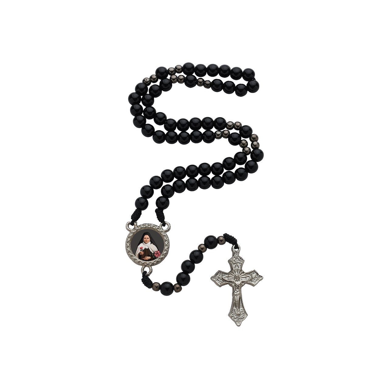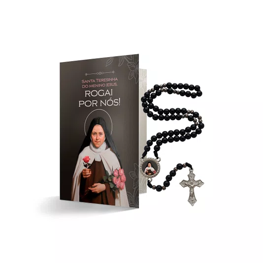 Terço de Santa Teresinha com Folheto - Contas Pretas 6mm