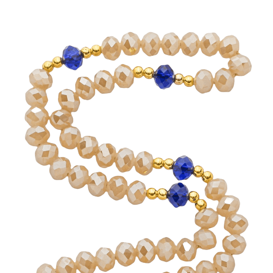 Cristais de Alta Qualidade: As contas em formato de cristal lapidado captam a luz, conferindo um brilho especial que destaca a peça no mostruário.