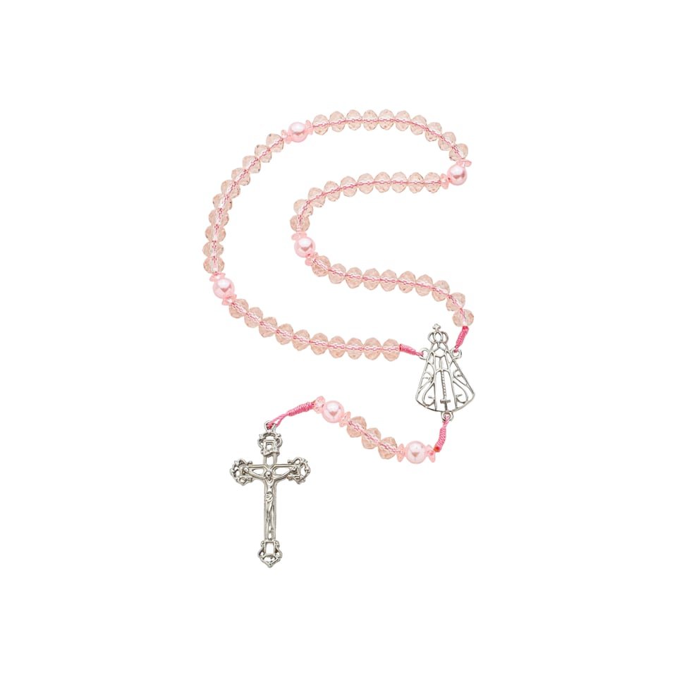 Terço com contas de plástico rosa de Nossa Senhora Aparecida - 2Un