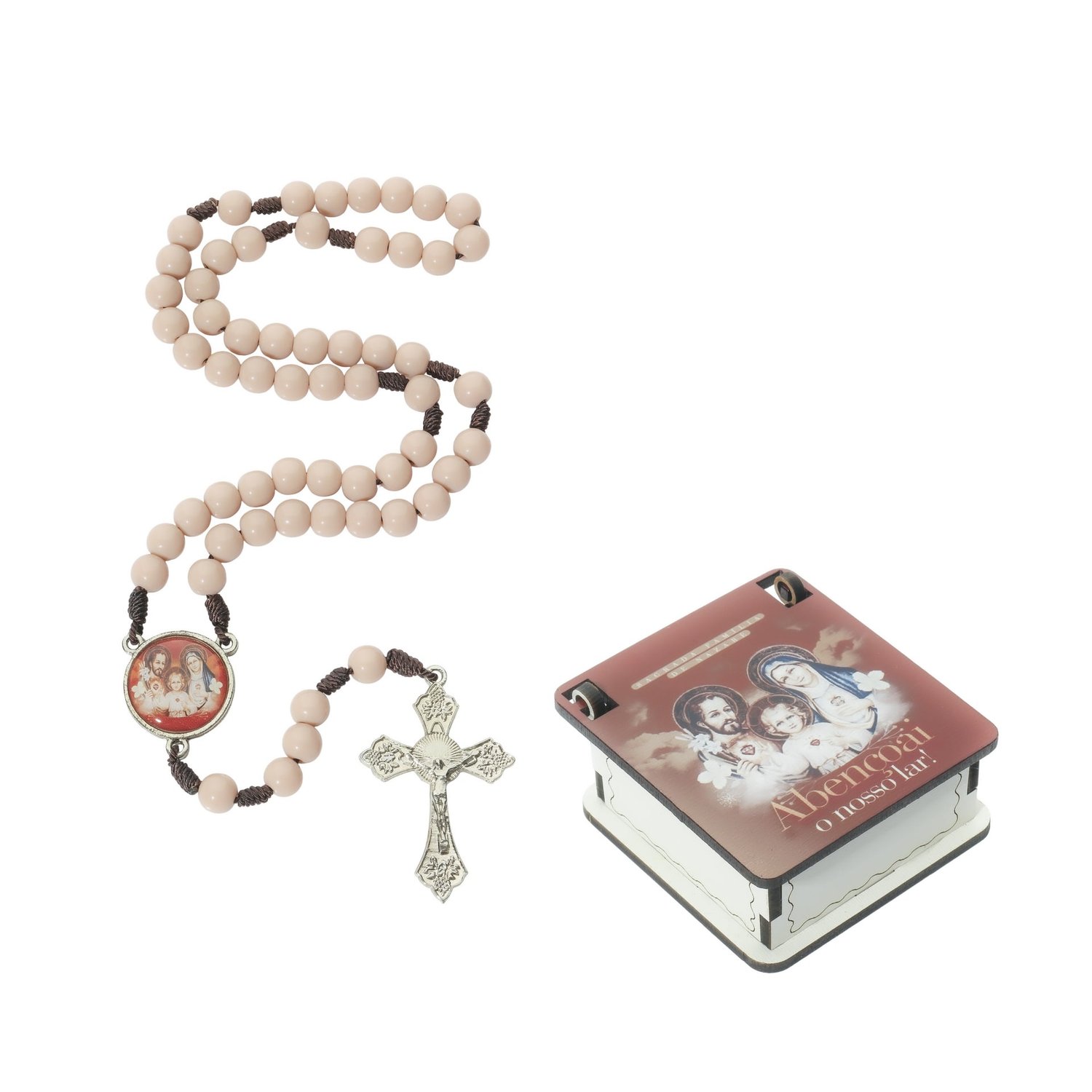 Terço de Sagrada Família com Porta-terços em Mdf - Vermelho