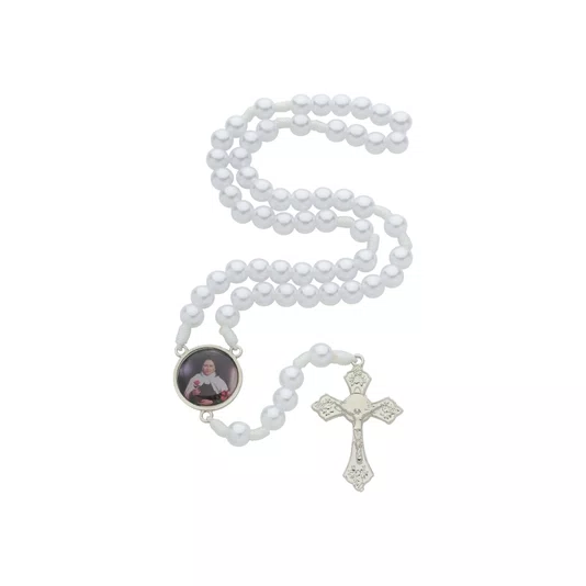 Terço de Santa Teresinha do Meninos Jesus com contas craqueladas