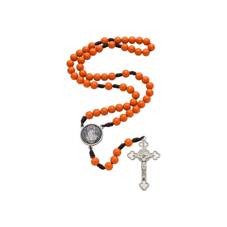 Terço de São Bento Pérola Laranja Terracota 8mm