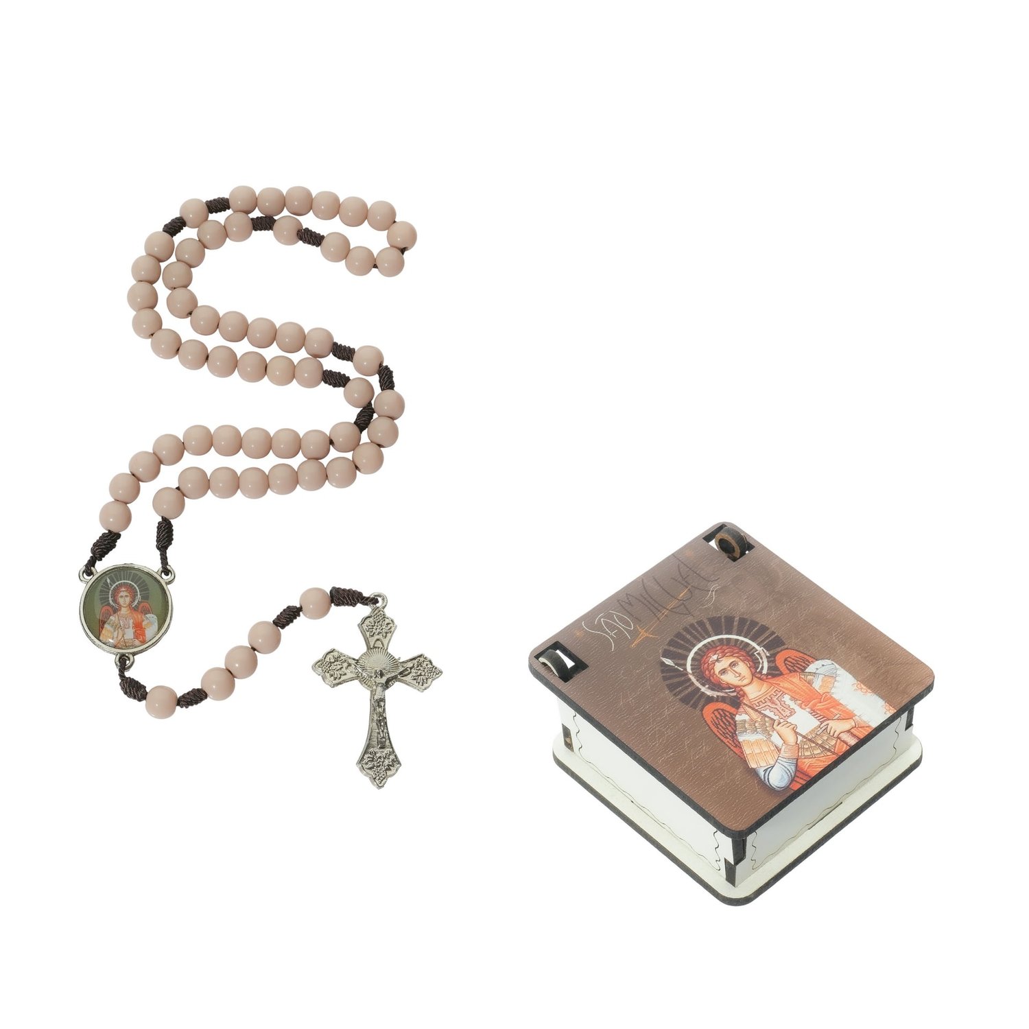 Terço de São Miguel Arcanjo com porta-terço em MDF