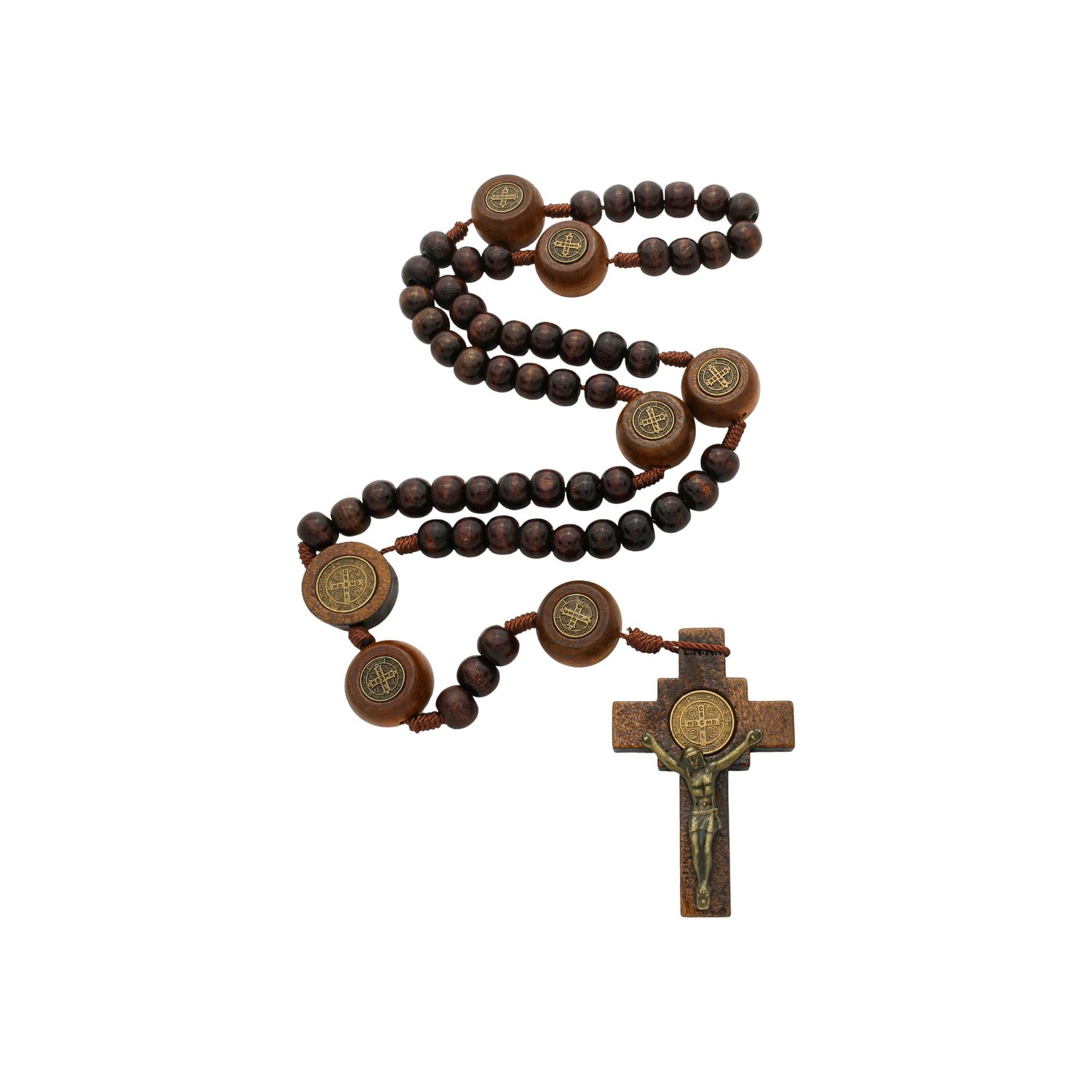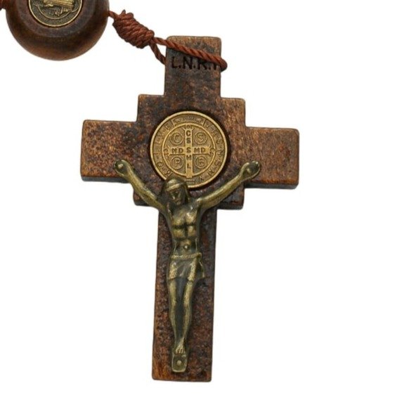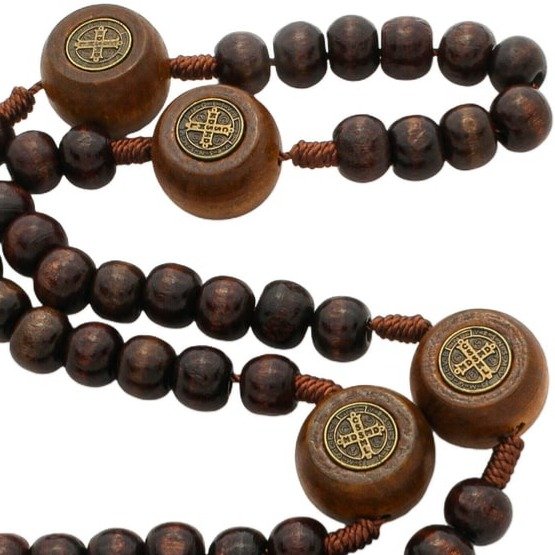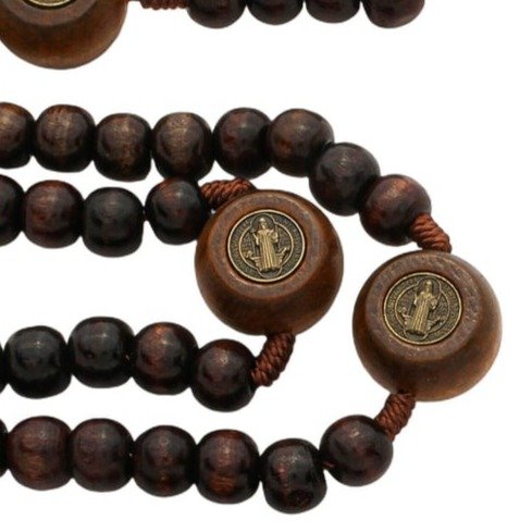 Terço Intercessor de São Bento Madeira Marrom 10mm e Pai Nosso 20mm