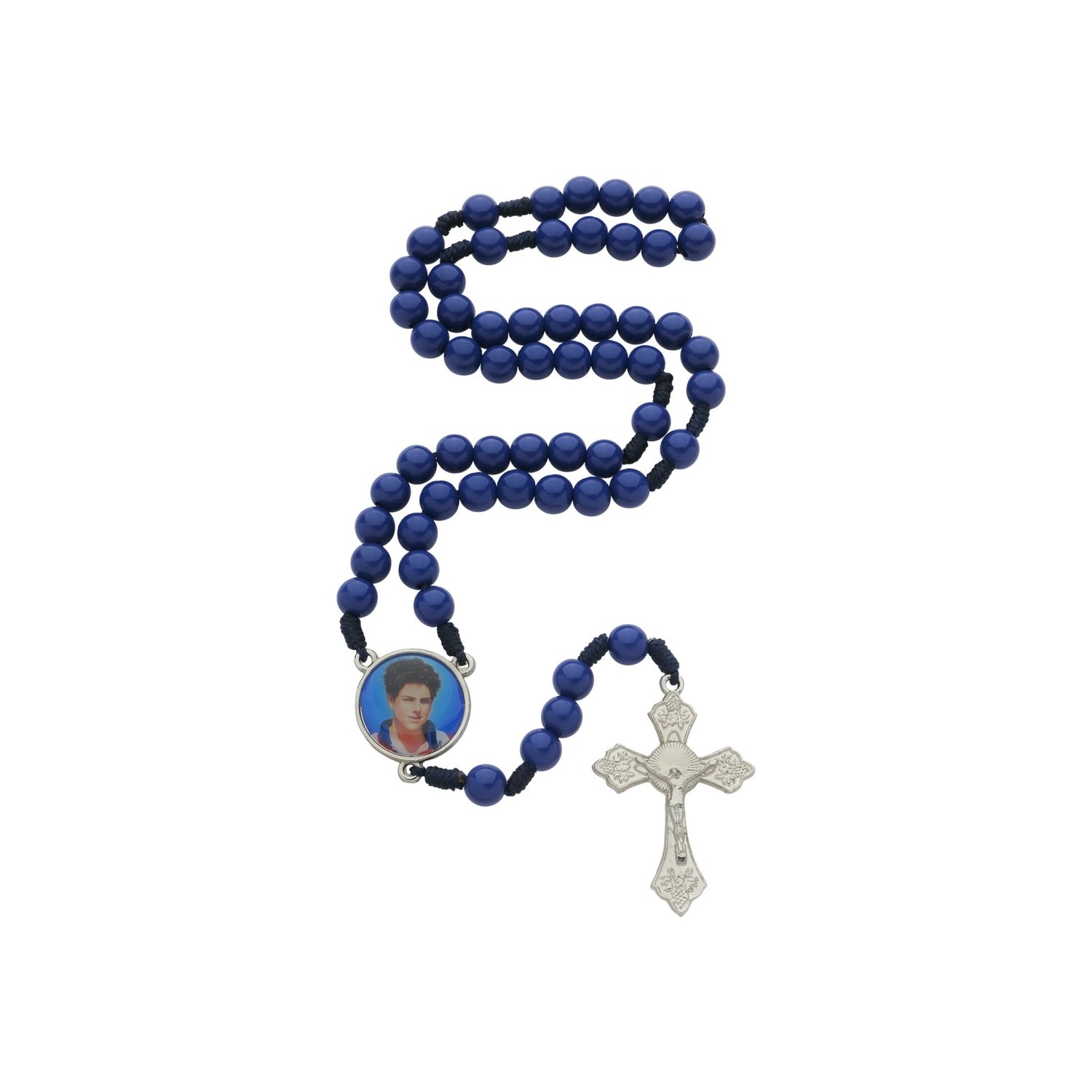 Terço São Carlo Acutis Pérola Azul Marinho 8mm