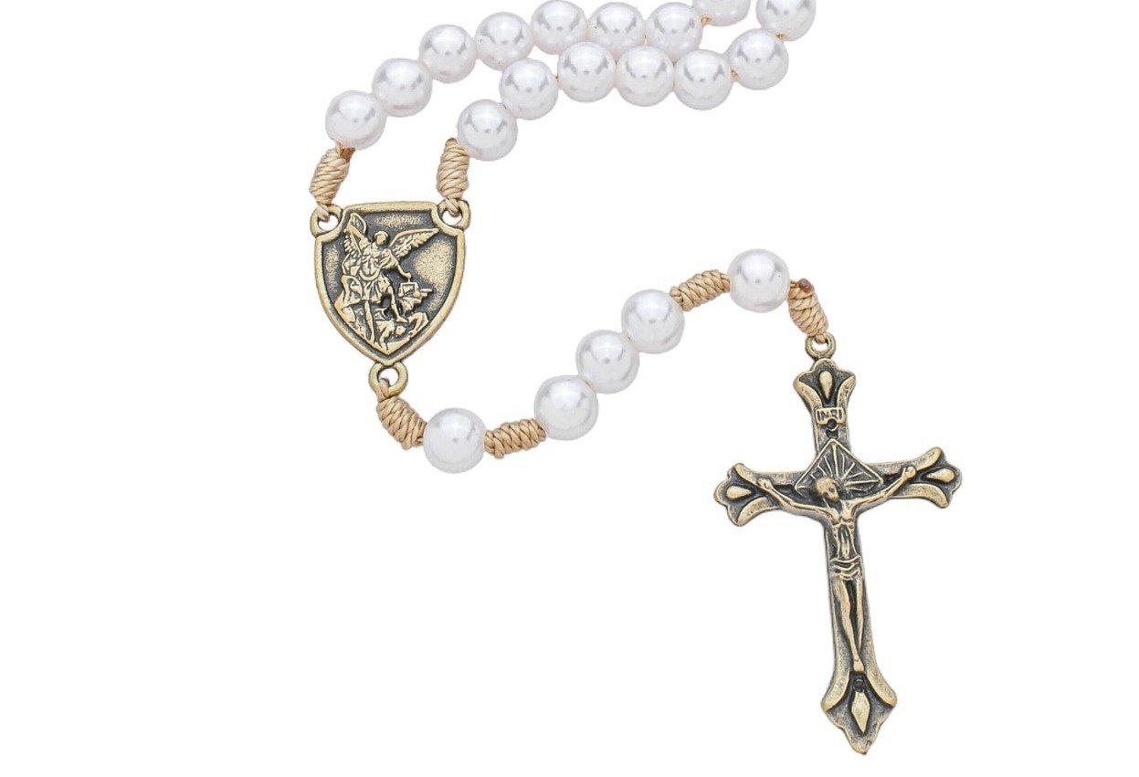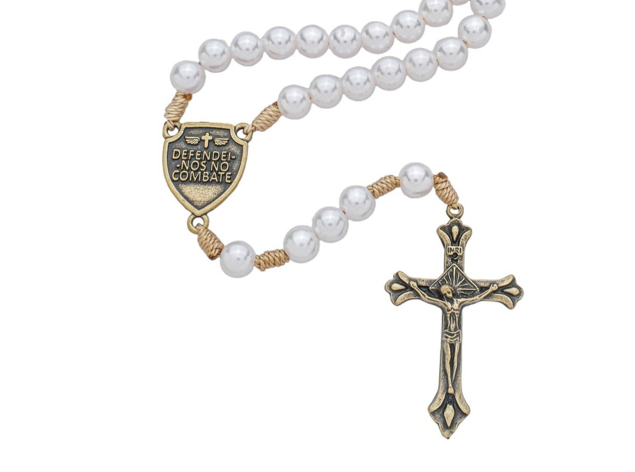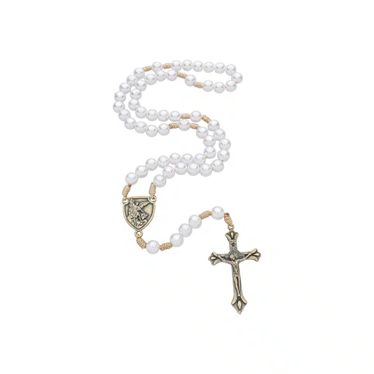 Terço São Miguel de Pérola ABS Branca 8mm