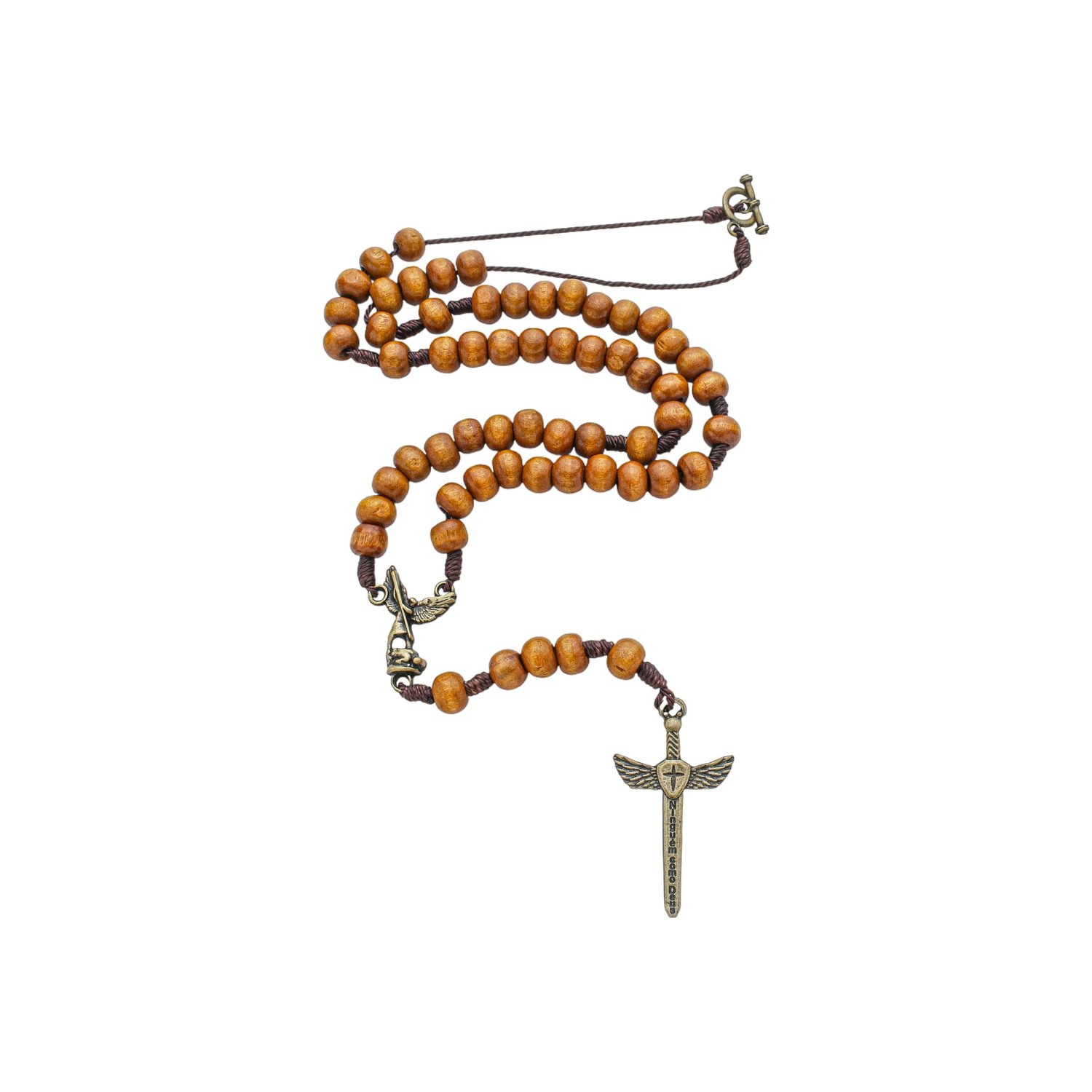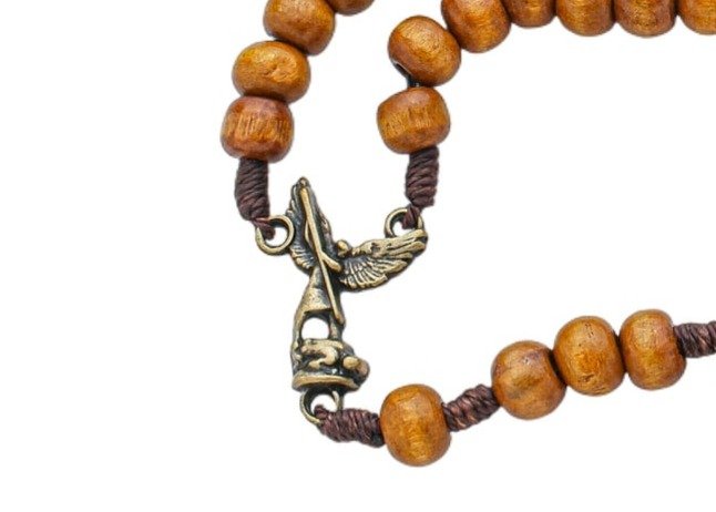 Terço de Pescoço São Miguel de Madeira Clara 8mm