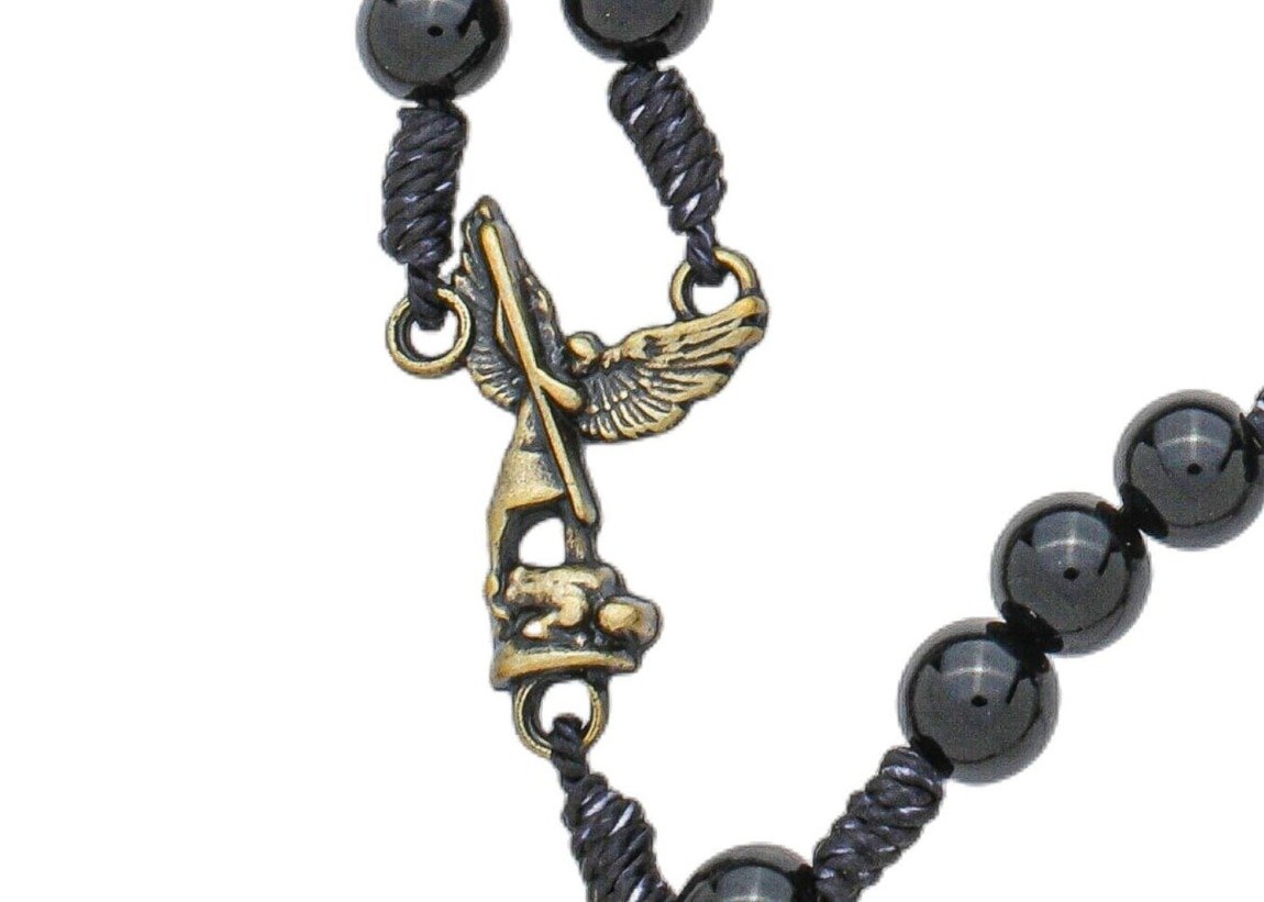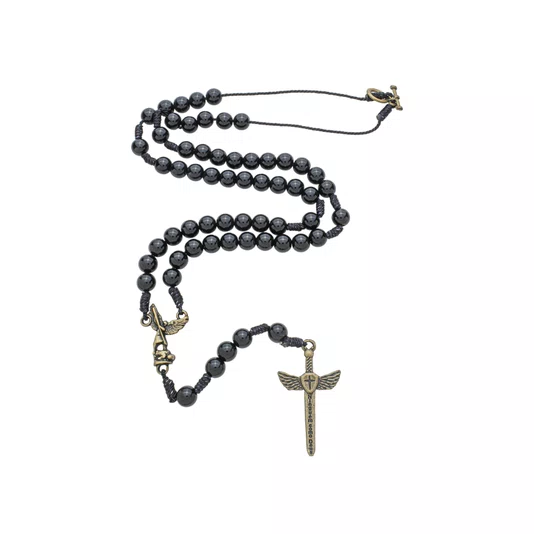 Terço de Pescoço São Miguel de Pérola Preta 8mm