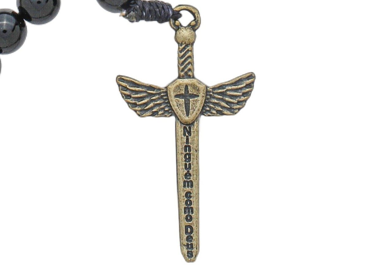O grande diferencial prático deste produto é o seu fecho de fácil manuseio, que permite colocar e retirar a peça com total agilidade e segurança, adaptando-se perfeitamente à rotina do consumidor final. O design é enriquecido pelo Crucifixo em formato de Espada, um símbolo exclusivo da milícia celeste que ostenta a inscrição "Ninguém como Deus", reforçando o apelo comercial de uma peça que é, ao mesmo tempo, um artigo de moda religiosa e um poderoso sacramental.